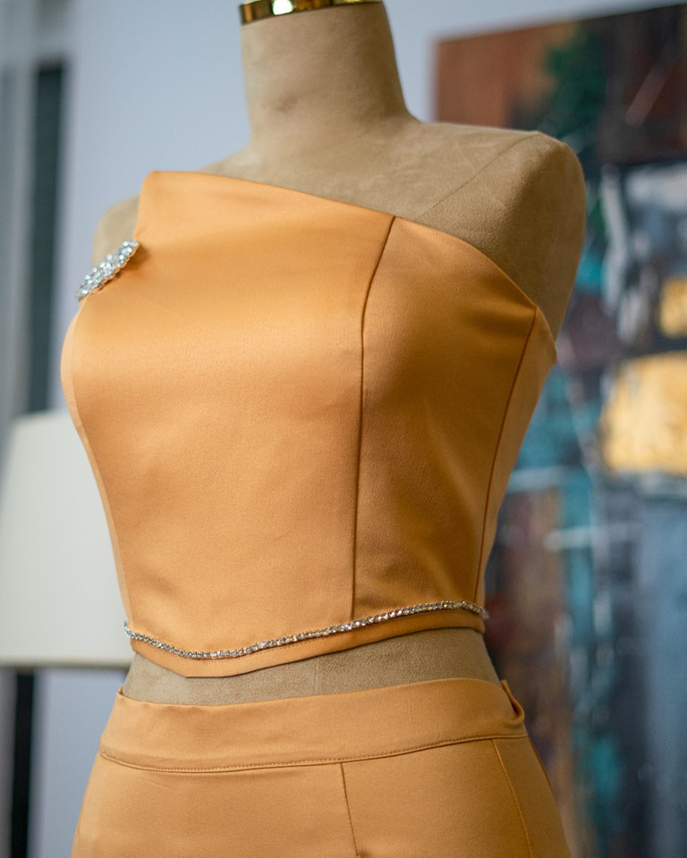 Illuminate your wardrobe with the Golden Hour Ensemble—a stunning two-piece set
